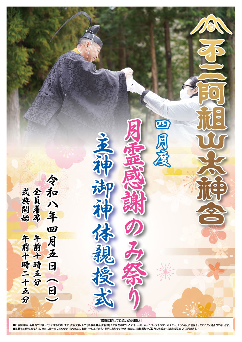 不二阿祖山太神宮 月霊祭は、毎月第1日曜日に斎行しております。