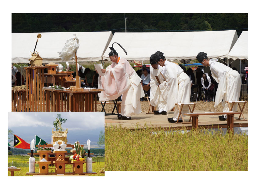 お米を耕作するにあたり、大地を清め、神様より与えられた恵みに感謝し、五穀豊穣を祈る祭事になります。