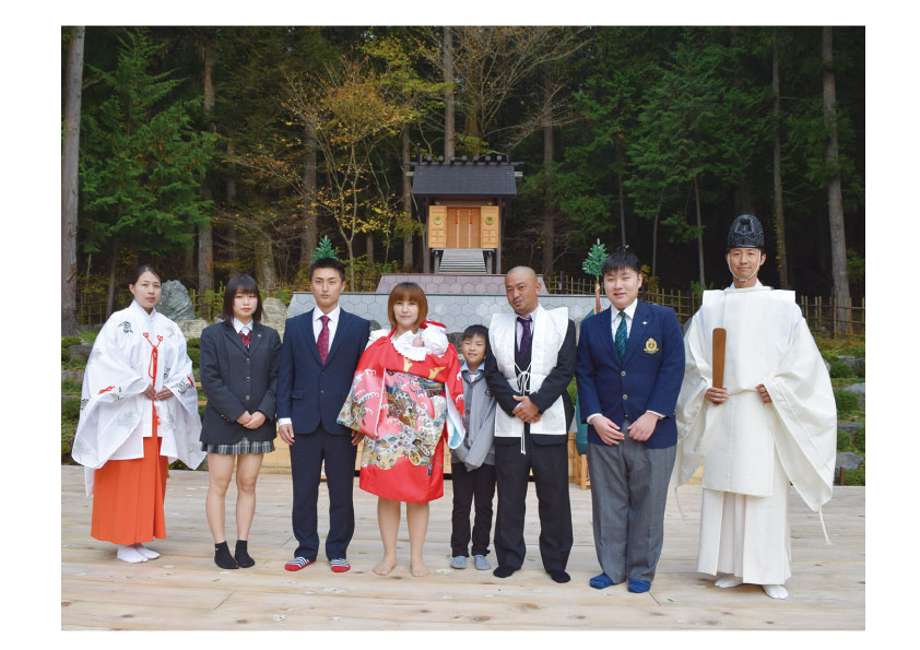 不二太神様の御前において誓詞を誓い、清らかな神气の中で、太古から行われていた真媾えの儀等々、厳かな式典をとおして、日本の伝統文化を感じながら、末永く幸せな家庭を築かれますよう、ご祈念させていただく式典が執り行われます。